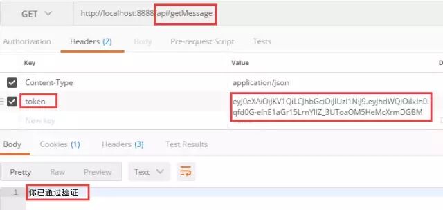 把token加在请求头中,再次访问api/getMessage接口