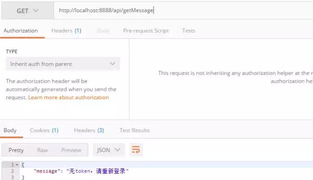 在没token的情况下访问api/getMessage接口