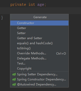 生成构造器/Getter/Setter