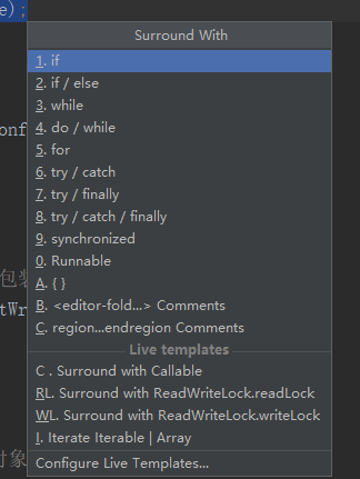 //把选中的代码放在 if/while/for/try里