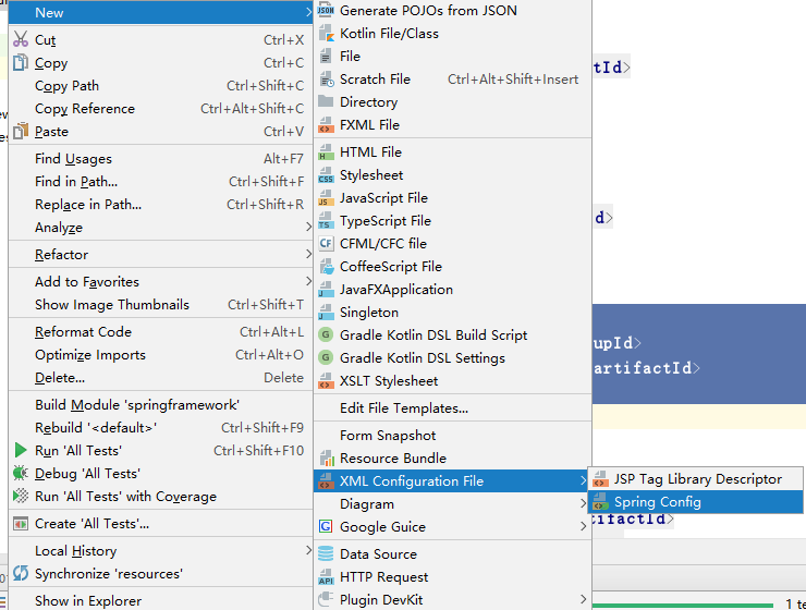 创建配置spring配置文件(注意是在resources目录下创建)