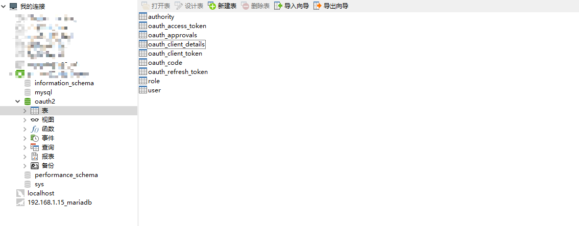 因为spring OAuth2封装好了常用的认证授权操作,所有需要使用OAuth2提供的表结构。项目中有提供。