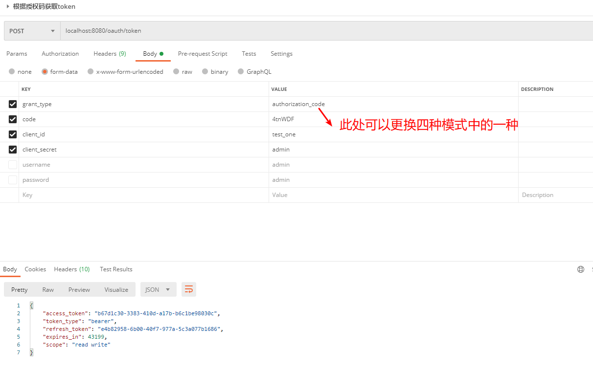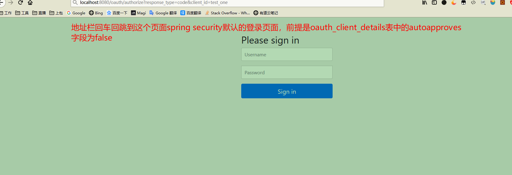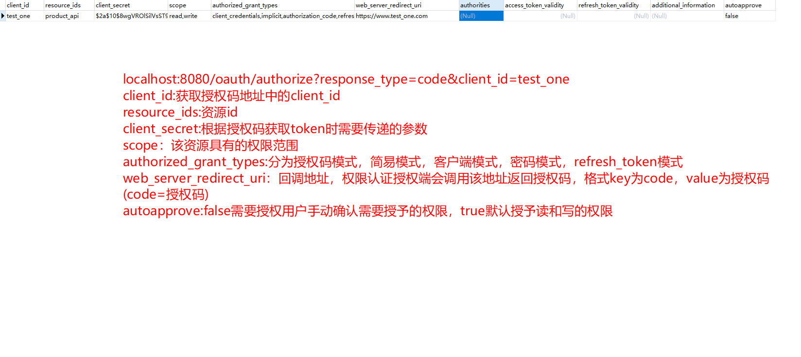 - 登录页面获取授权码 http://localhost:8080/oauth/authorize?response_type=code&client_id=test_one
