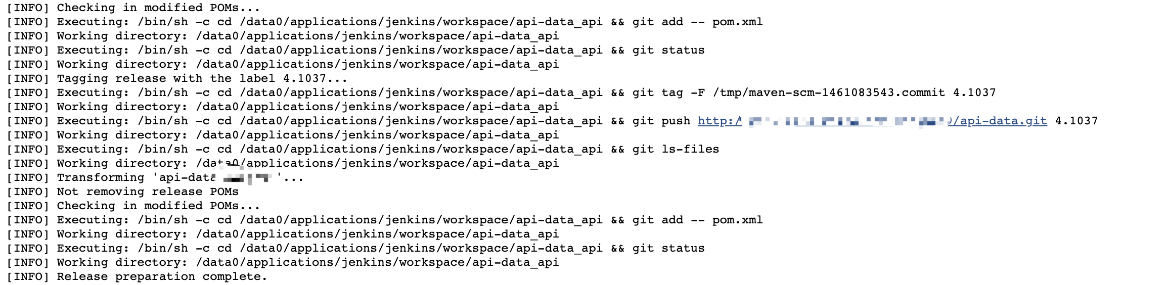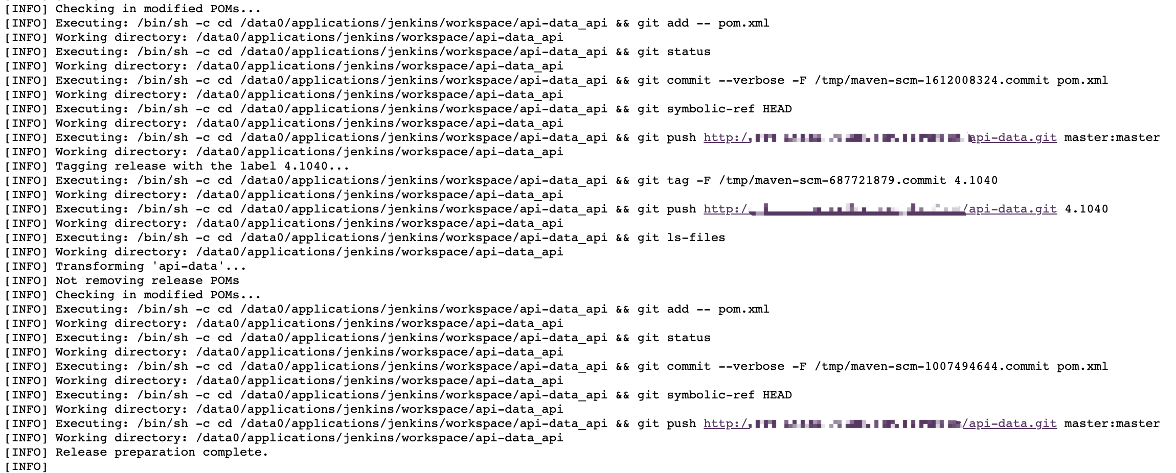 该 job 构建状态为 success,它使用 maven-release-plugin 时,没有将 release 版本的组件发布到 maven 私服,而是将 SNAPSHOT 版本的包发布到 maven 私服,同时 git 仓库的 pom.xml 版本也没升级,但是倒是打了 tag。