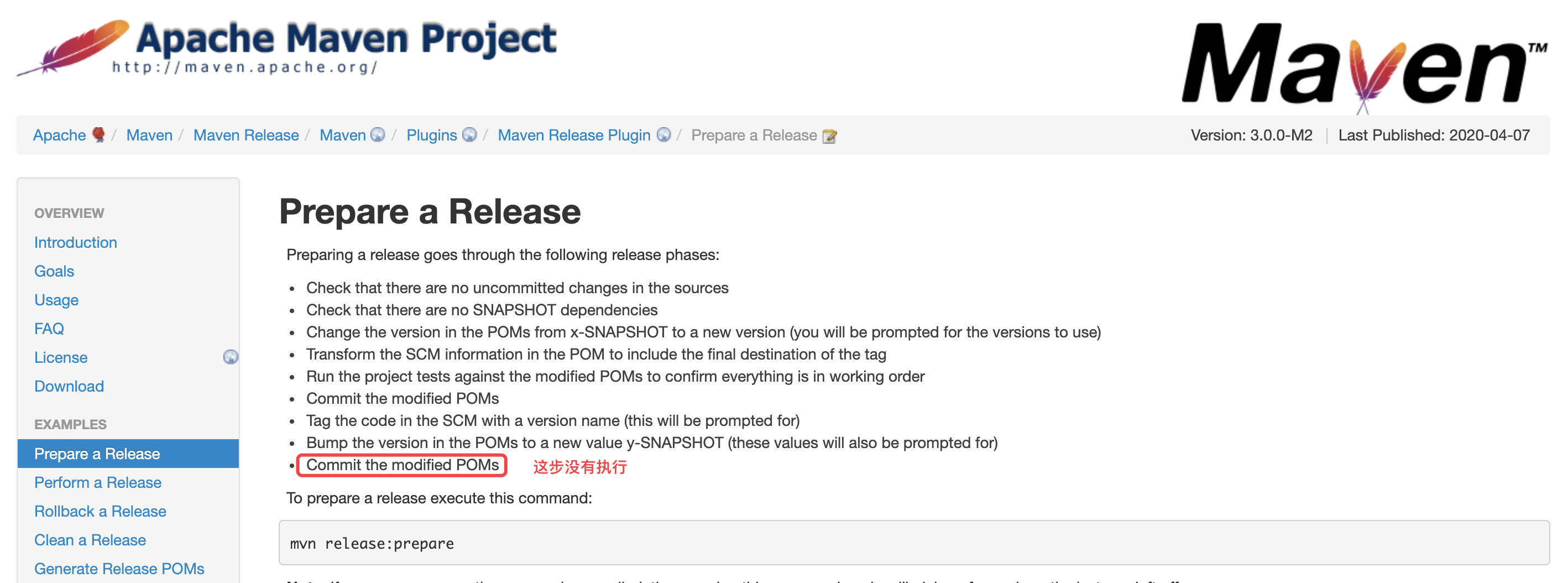 查看 maven-release-plugin 官方文档,查看 prepare 步骤具体做的事情: