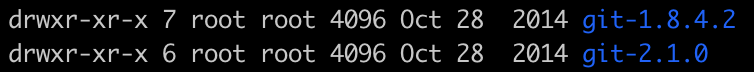后来发现服务器上有两个版本的 git,一个是 git-1.8.4.2,一个是 git-2.1.0