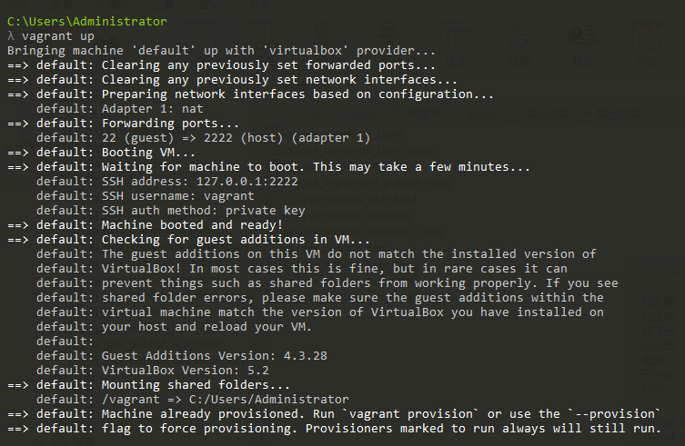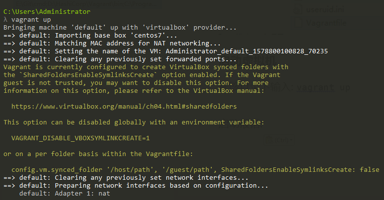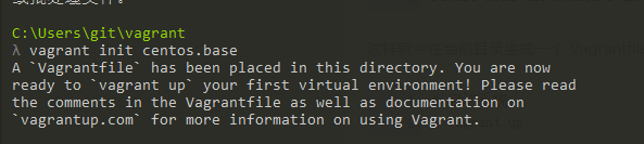 4、 在你想要创建虚拟机的目录下,执行以下命令进行初始化