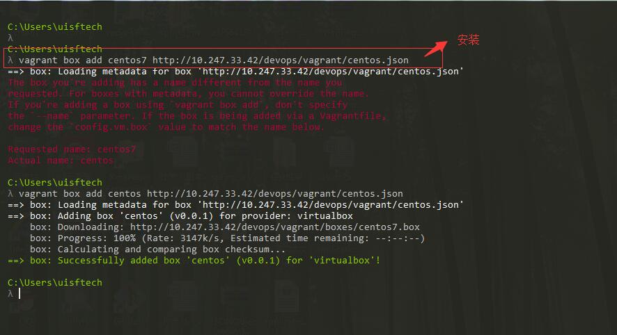 创建一个文件夹后再运行:vagrant box add centos.base http://10.247.33.42/devops/vagrant/centos.json