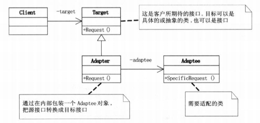 ① 通过引入一个适配器Adapter来重用现有的不兼容的旧类Adeptee,而无需修改旧类原有结构。