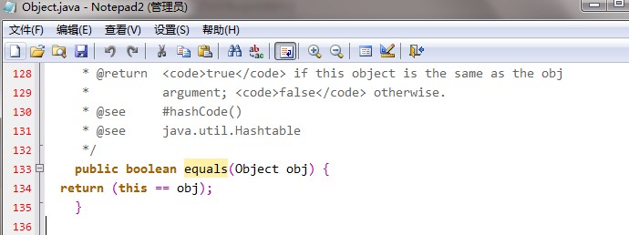 equals方法是基类Object中的方法,因此对于所有的继承于Object的类都会有该方法。为了更直观地理解equals方法的作用,直接看Object类中equals方法的实现。