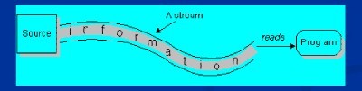 数据流是一串连续不断的数据的集合,就象水管里的水流,在水管的一端一点一点地供水,而在水管的另一端看到的是一股连续不断的水流。数据写入程序可以是一段、一段地向数据流管道中写入数据,这些数据段会按先后顺序形成一个长的数据流。对数据读取程序来说,看不到数据流在写入时的分段情况,每次可以读取其中的任意长度的数据,但只能先读取前面的数据后,再读取后面的数据。不管写入时是将数据分多次写入,还是作为一个整体一次写入,读取时的效果都是完全一样的。