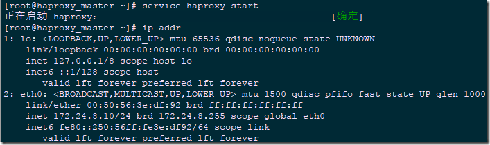 提示:必须先启动HAProxy服务,之后启动Keepalived,因为Keepalived会先检测HAProxy服务进程。