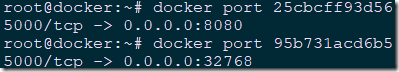 root@docker:~# docker run -d -p 8080:5000 training/webapp python app.py #使用-p参数来绑定指定端口。