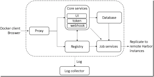 Job services: 主要用于镜像复制,本地镜像可以被同步到远程Harbor实例上。