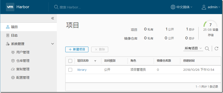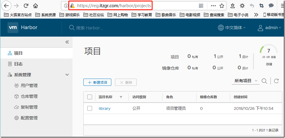 浏览器访问:reg.itzgr.com,并使用默认用户名admin/Harbor12345