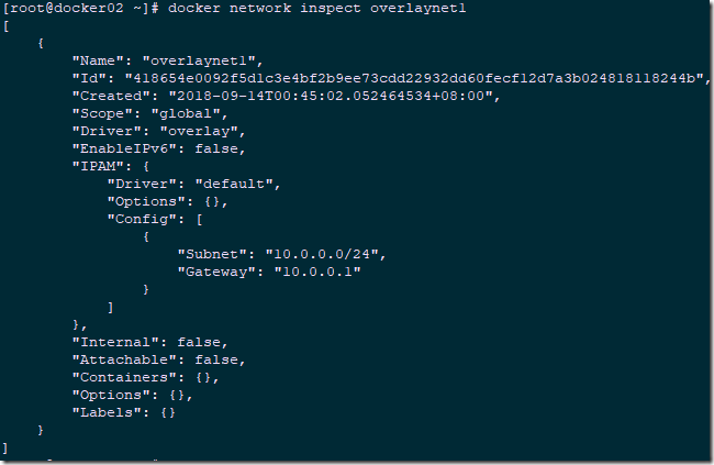 提示:分别在docker01和docker02宿主机查看在docker01上创建的overlay网络,若都存在则表示通过 etcd,网络数据是分布式而不是本地的了。
