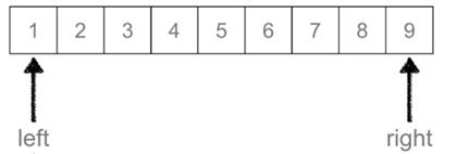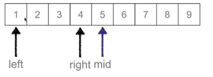 在上面的列表中我们使1所在的位置为left,9所在的位置为right,这样从left-right就是候选区,