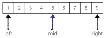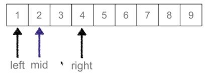 然后依次进行取值,其中left、mid、right都是指的值的下标;如果最后left>right,则表示该范围没有所需要的值。