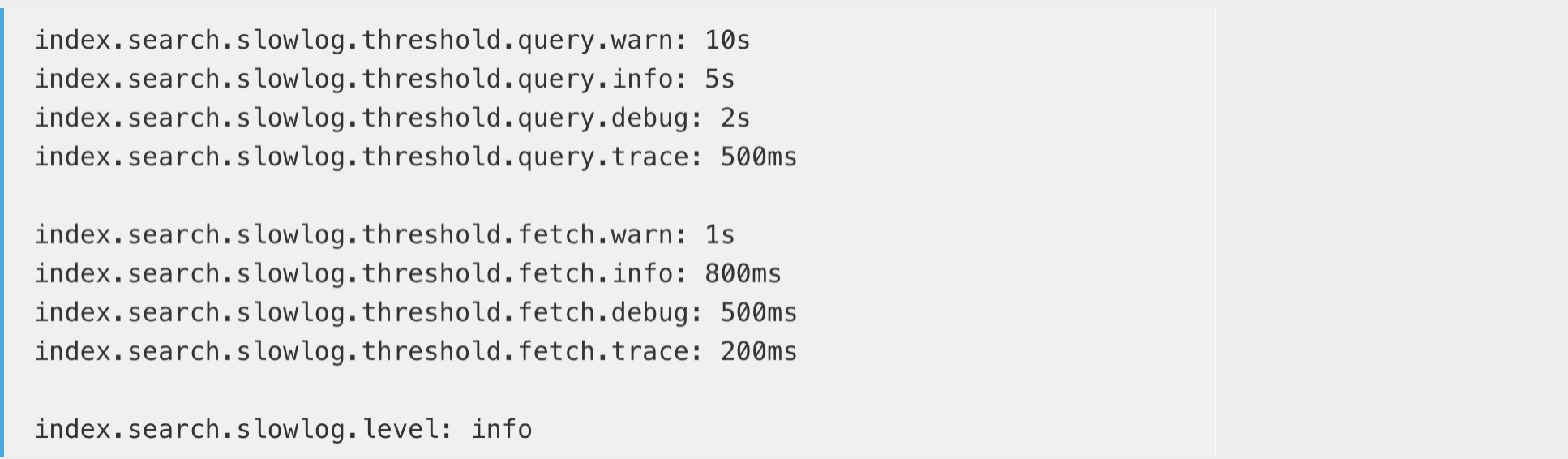 注意,日志记录是在分片级别范围内完成的,这意味着只有在特定的分片中执行搜索请求的慢日志才会被记录。