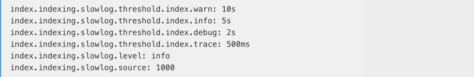 和前面的慢查询日志类似,索引慢日志文件名后缀为_index_indexing_slowlog.log