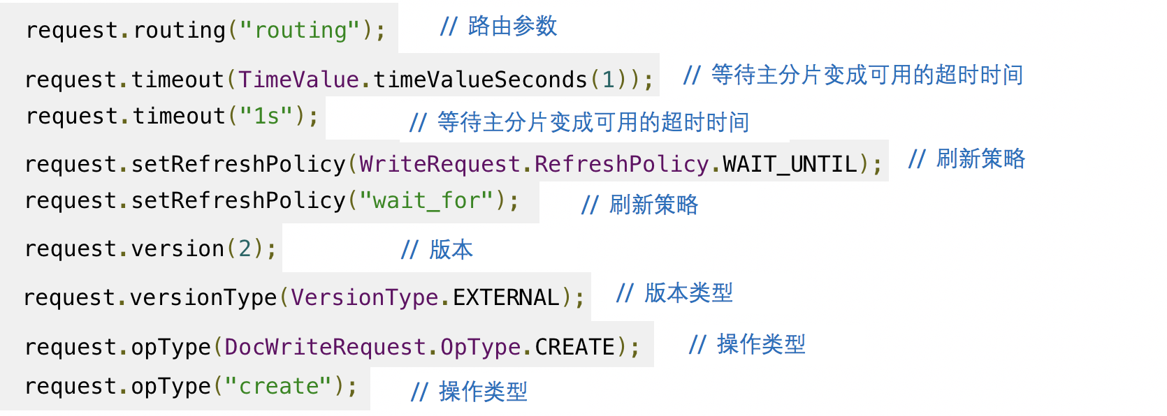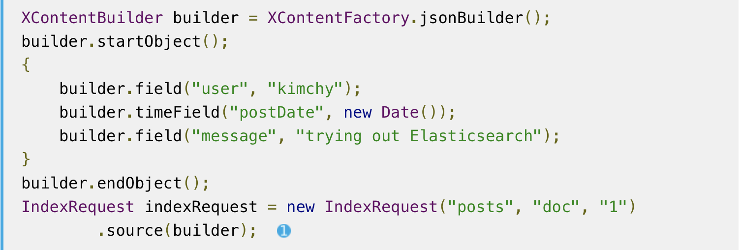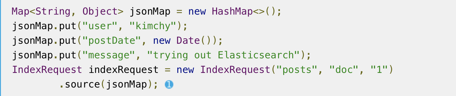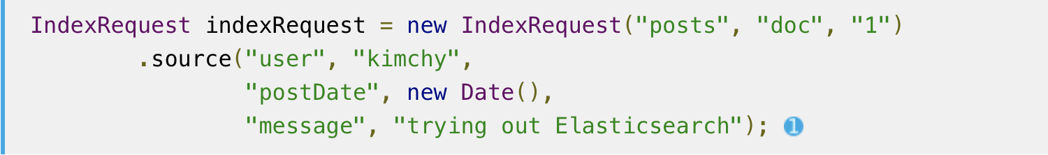 IndexRequest request = new IndexRequest("posts", "doc", "1");