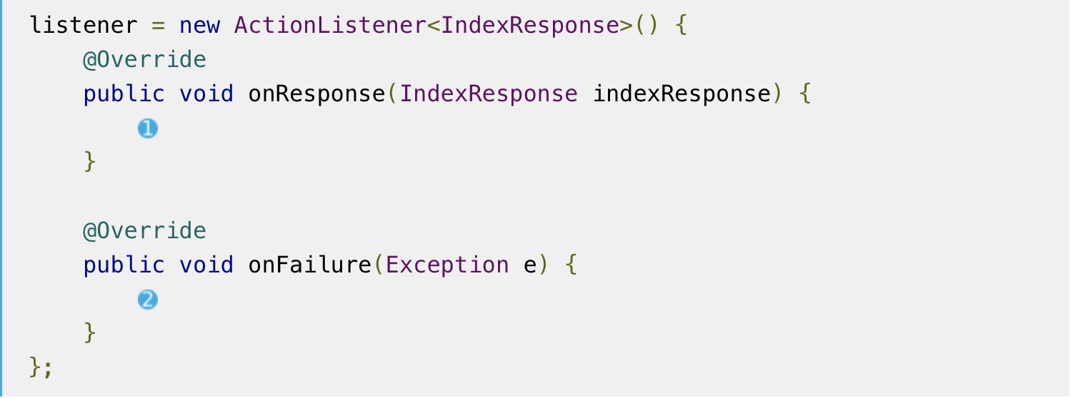 你也可以异步执行 IndexRequest,为此你需要指定一个监听器来处理这个异步响应结果: