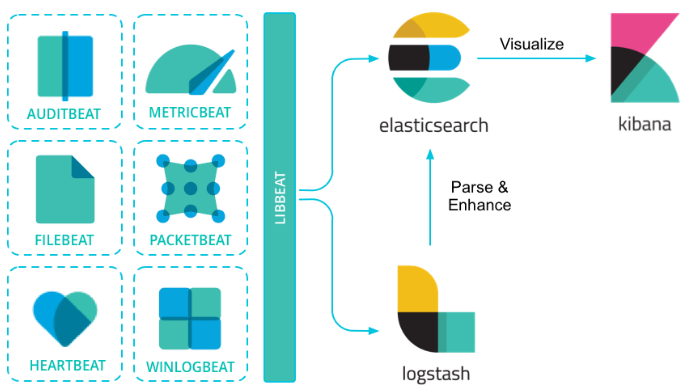 Beats可以直接(或者通过Logstash)将数据发送到Elasticsearch,在那里你可以进一步处理和增强数据,然后在Kibana中将其可视化。