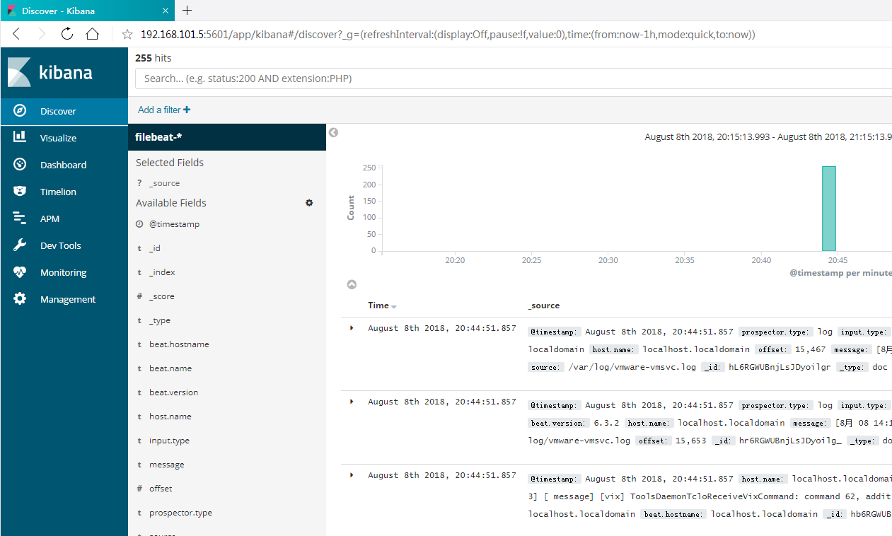 yellow open filebeat-6.3.2-2018.08.08 otgYPvsgR3Ot-2GDcw_Upg 3 1 255 0 63.7kb 63.7kb