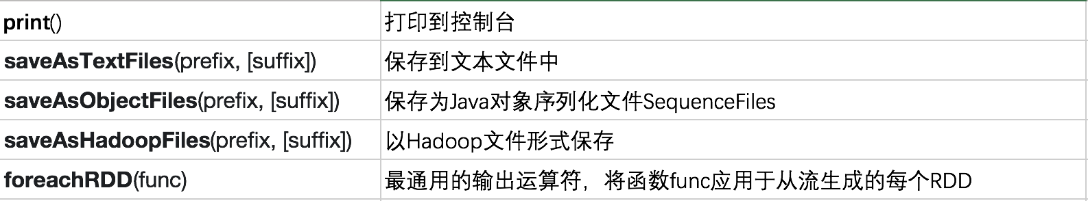 输出操作允许将DStream的数据输出到外部系统,例如数据库或文件系统。