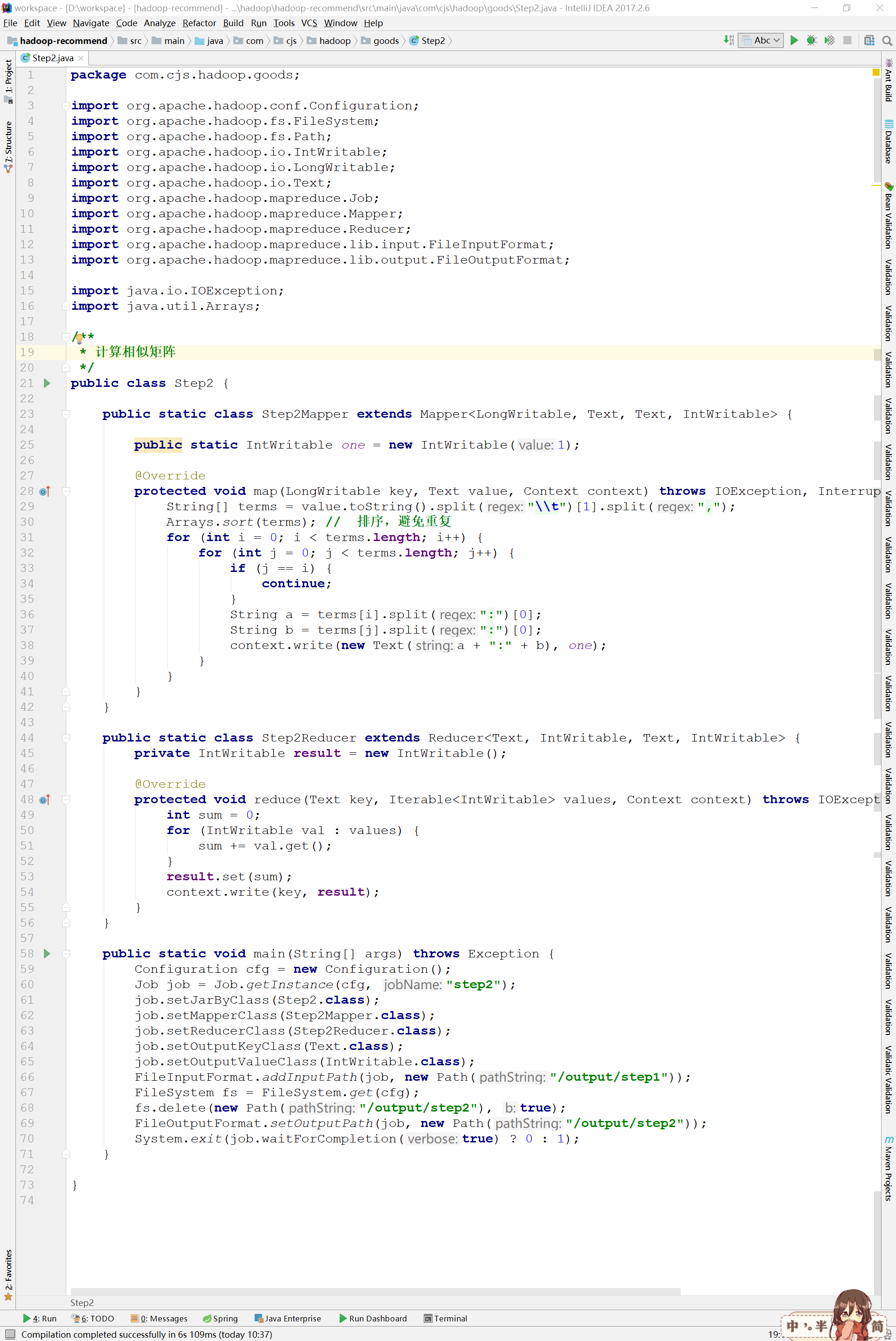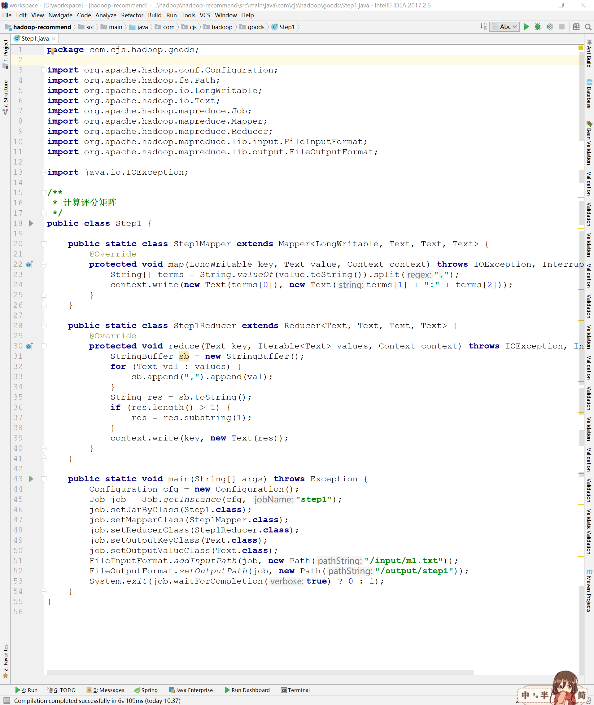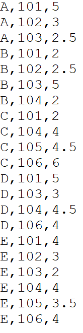 在MapReduce作业中,输入数据的格式是:用户,物品,评分