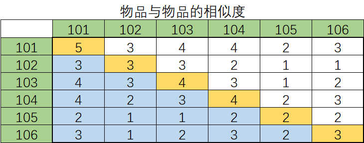 本例中,不采用余弦相似度的方式计算物品与物品相似度