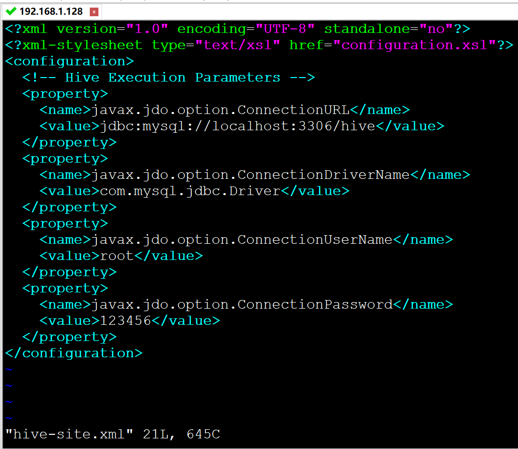 在conf目录下新建一个hive-site.xml文件,配置如下