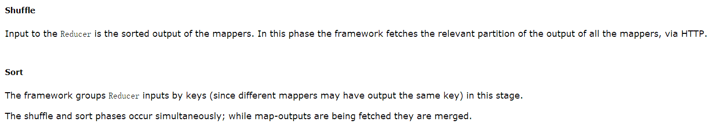 Sort:这个阶段会按照key分组。Shuffle和Sort阶段是同时进行的,在抓取maps输出的时候就已经进行了合并