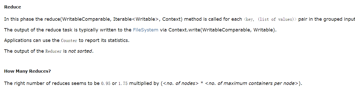 2、Reducer任务的数量是根据公式算出来的。大概是<no. of nodes> * <no. of maximum containers per node> 的0.95倍到1.75倍之间。也就是说Reducer任务数决定了会有多少个分区。