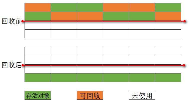 该算法标记阶段和Mark-Sweep一样,但是在完成标记之后,它不是直接清理可回收对象,而是将存活对象都向一端移动,然后清理掉端边界以外的内存。