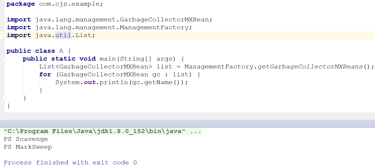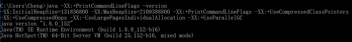 这里注意,经过测试JDK 1.8.0_152默认垃圾收集器为:PS MarkSweep 和 PS Scavenge,而并不是G1