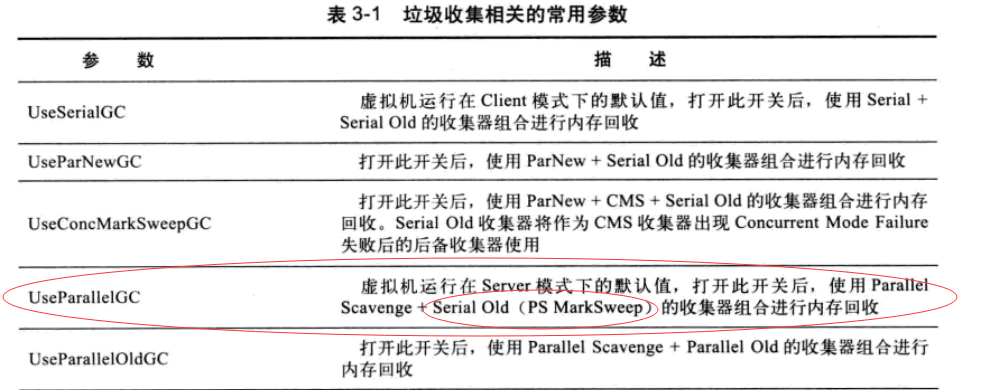 也就是说,本例中JVM使用的垃圾回收器是 Parallel Scavenge (新生代,并行GC) + Serial Old (老年代,串行GC)