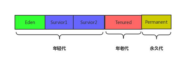 在JDK1.7以及其前期的JDK版本中,堆内存通常被分为三块区域:Young Generation、Old Generation、Permanent Generation for VM Matedata