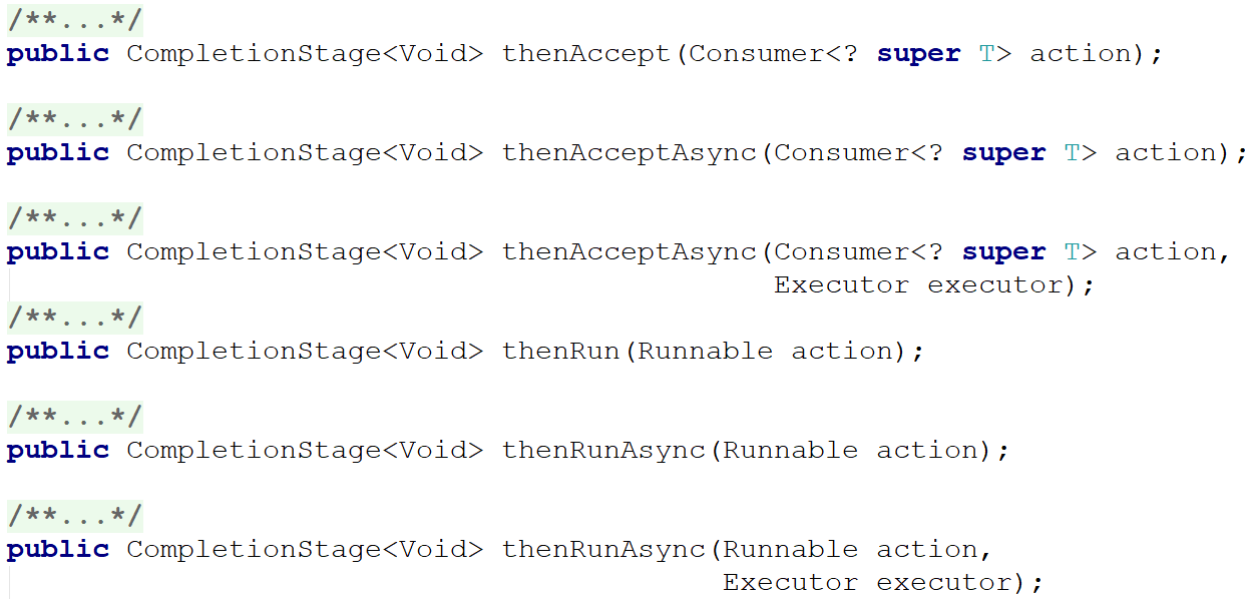 - thenAccept接收上一阶段的输出作为本阶段的输入