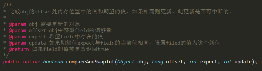 在Java中,一个线程想修改某个变量的值,那么第一步是将变量的值从主内存中读取到自己工作内存中,然后修改,最后写回主内存。这个过程可以归结为:读取——修改——写入,在写回内存的时候可能当前内存中那个值已经发生了变化,这个时候如果继续写则会覆盖别人的数据,只有当内存中的那个值和它修改之前读到的那个值一样,才可以写入。这个跟数据库是一样的。Java中通过Unsafe中compareAndSwapObject这样的方法类实现的,它直接调用CPU指令。