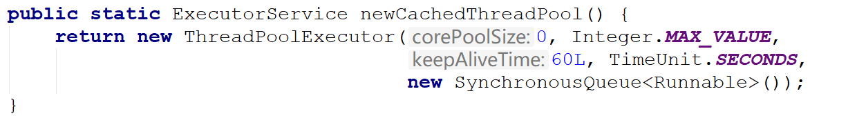 newCachedThreadPool:核心线程数是0,最大线程数是Integer.MAX_VALUE,空闲线程生存时间是1min,队列是SynchronousQueue