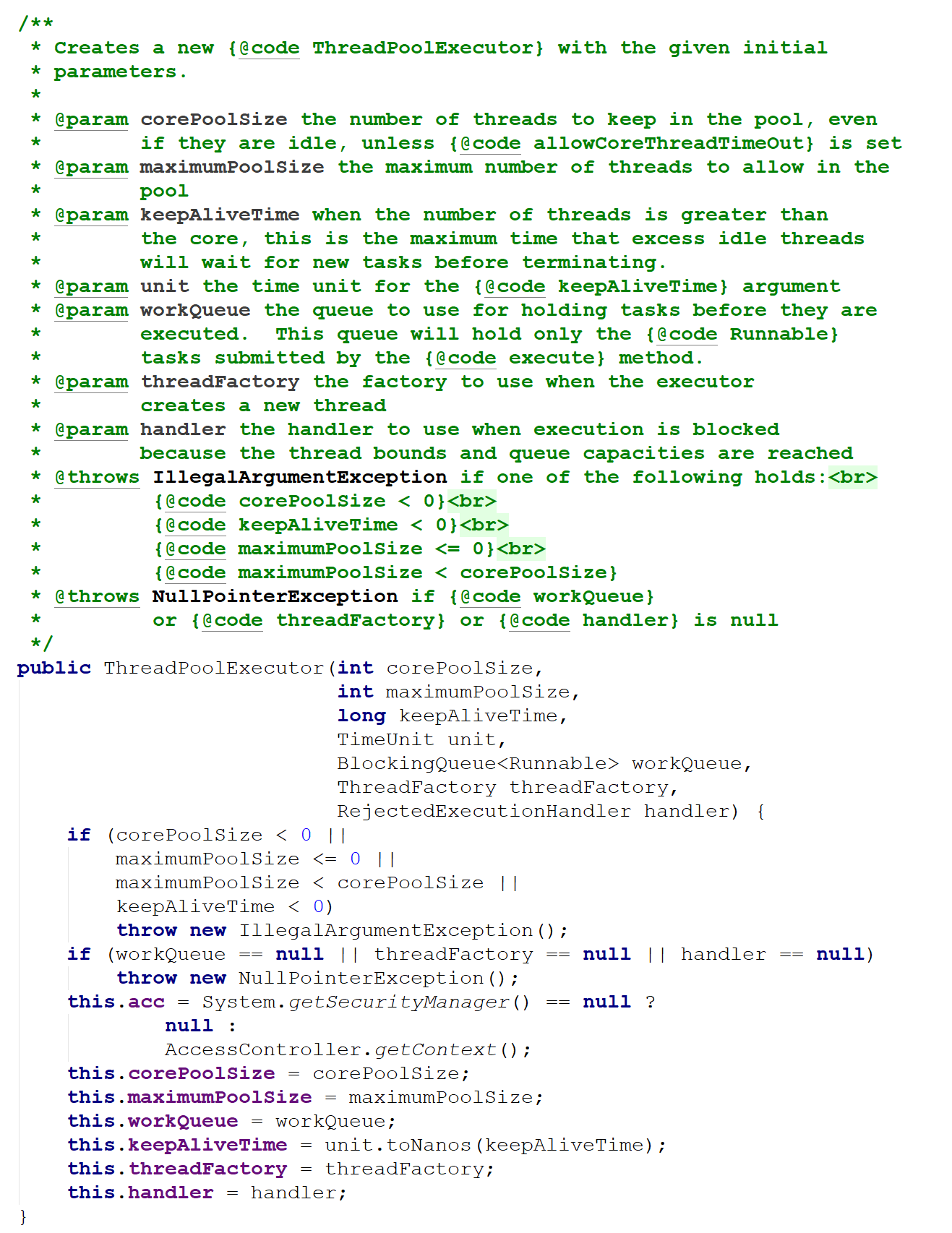 上面这段代码一直在用,面试的时候也经常被问到,却从未深究过,不知道线程池到底是怎么回事,今天看看源代码,一探其究竟