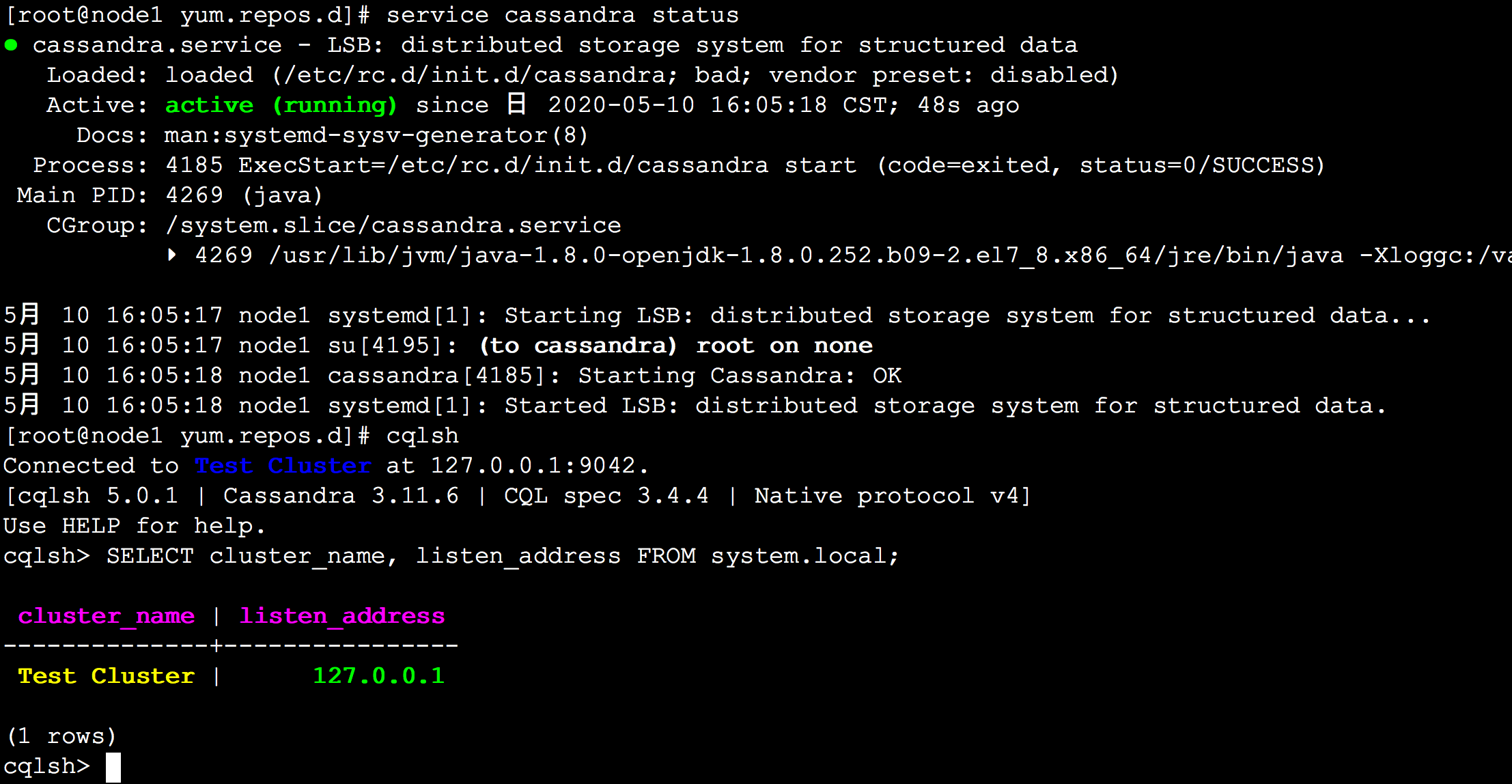 命令行直接输入cqlsh即可连接到本地cassandra数据库,就像直接输入mysql回车一样