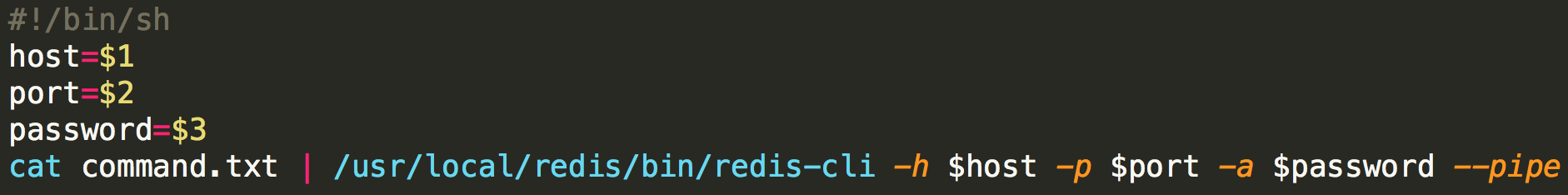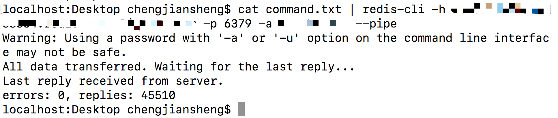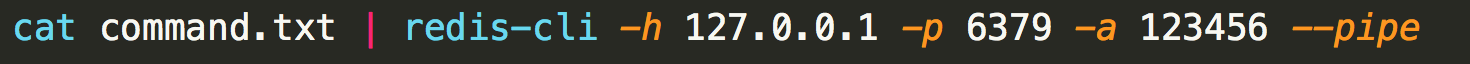 cat command.txt | redis-cli -h 127.0.0.1 -p 6379 -a 123456 --pipe
