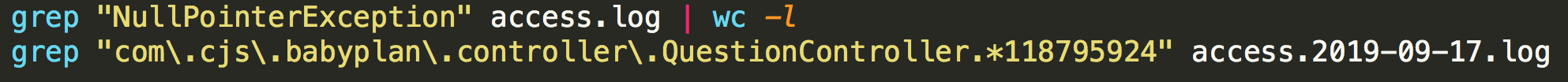 grep "com\.cjs\.babyplan\.controller\.QuestionController.*118795924" access.2019-09-17.log