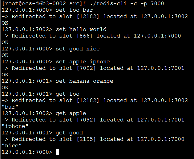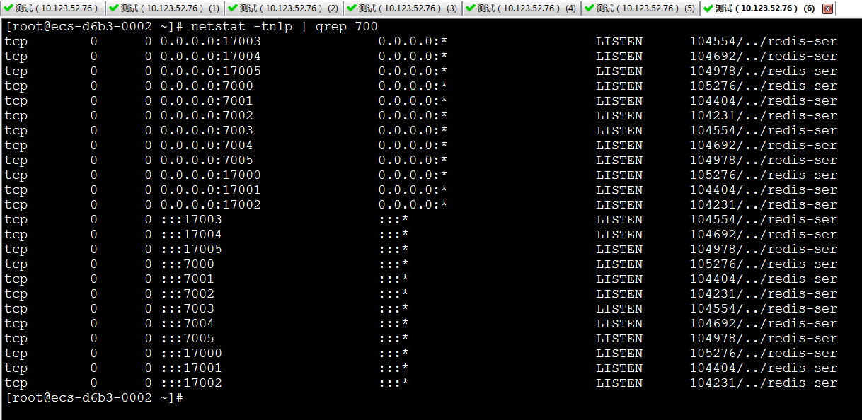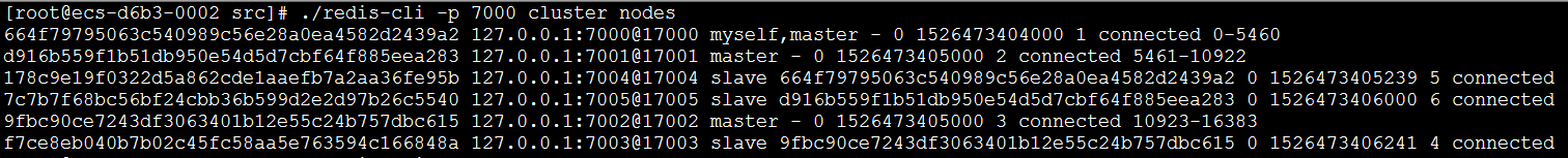 我们可以看到,7000、7001、7002是master,7004是7000的slave,7005是7001的slave,7003是7002的slave。