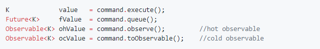 - HystrixObservableCommand.construct() — 返回一个Observable,并且推送响应或者发送一个onError通知