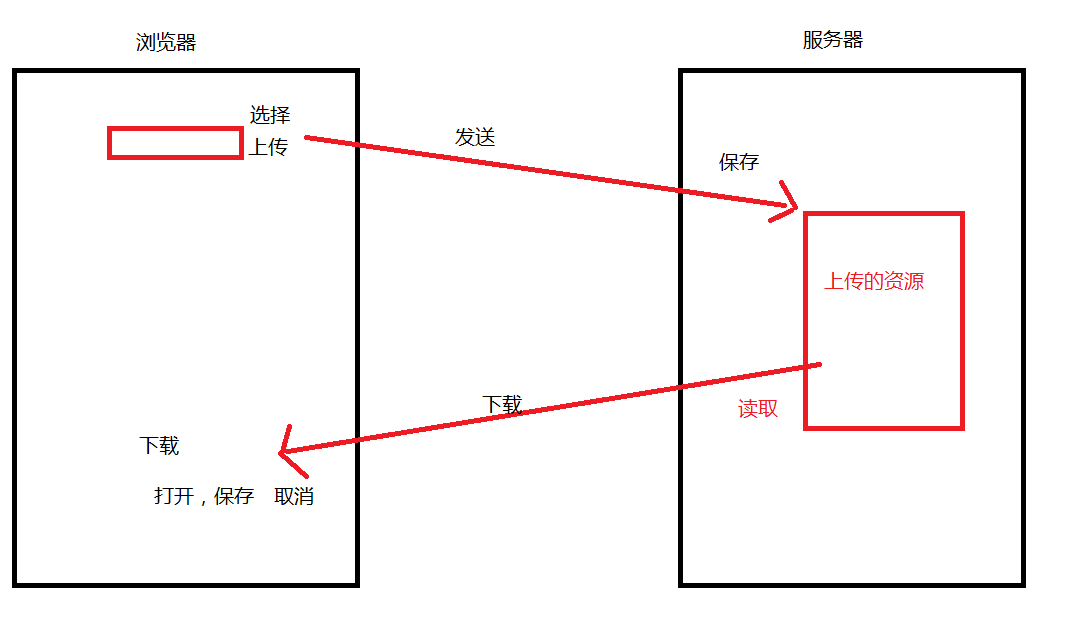 上传:我们把需要上传的资源,发送给服务器,在服务器上保存下来。