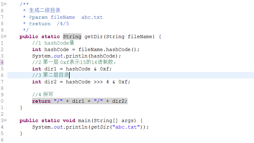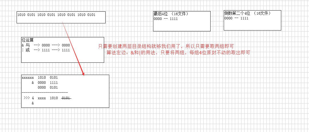 同一级目录下的文件过多问题:创建多级目录,通过文件名的hashcode的值,hashCode为int型,占4个字节,一个字节占8位,也就是占32位,将其分组,4位4位一组,就能分8组,每一次代表一层目录,也就能够分8层目录,每一层中,有可以创建16种不同的文件夹。这样算下来,就能有很多很多个文件夹了,每个文件夹下面都可以存很多文件,看我们的业务需求,来决定要创建几层目录,就从hashcode中拿几组数据出来。原理图如下