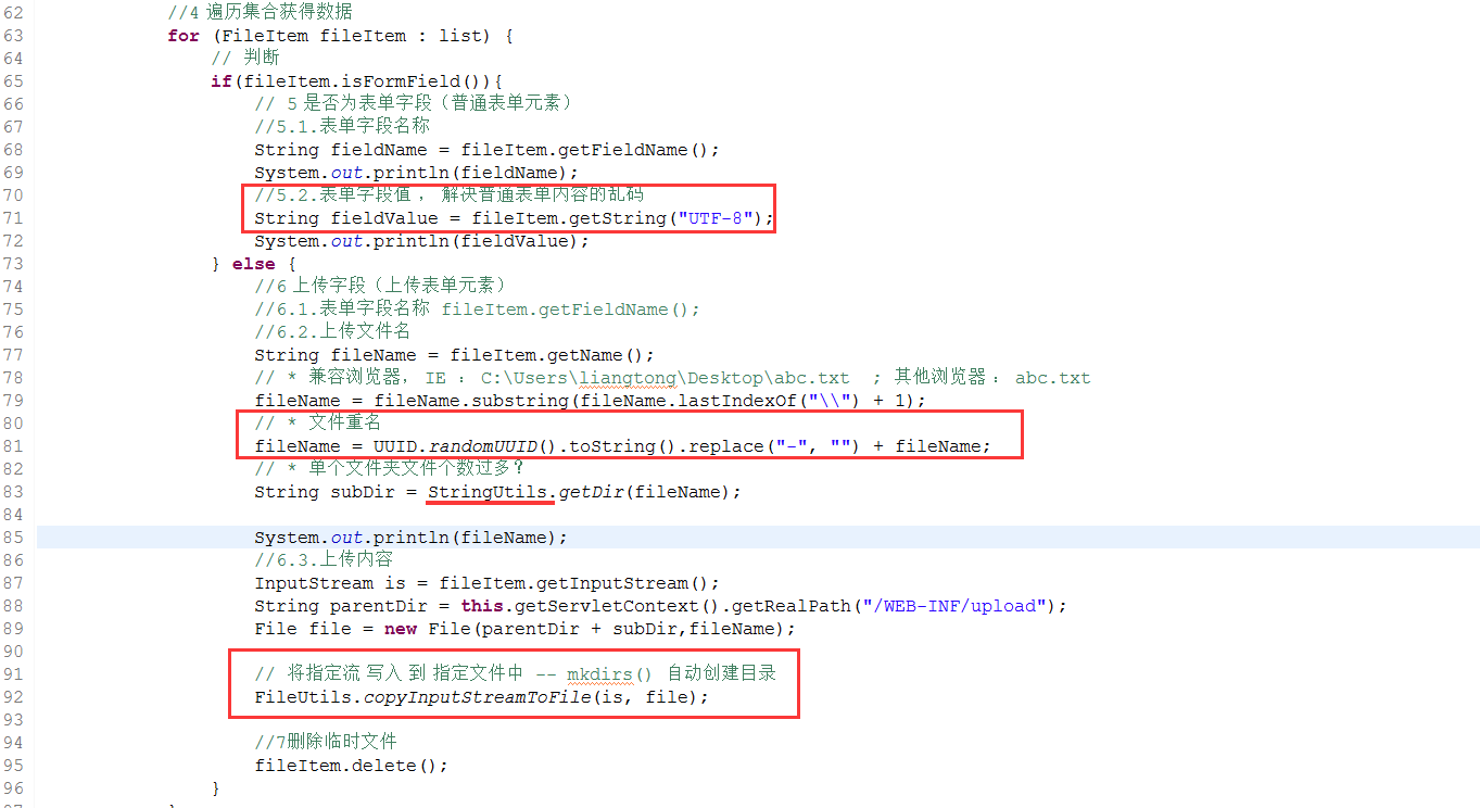 System.out.println(fileName); //上传的文件名会中文乱码,